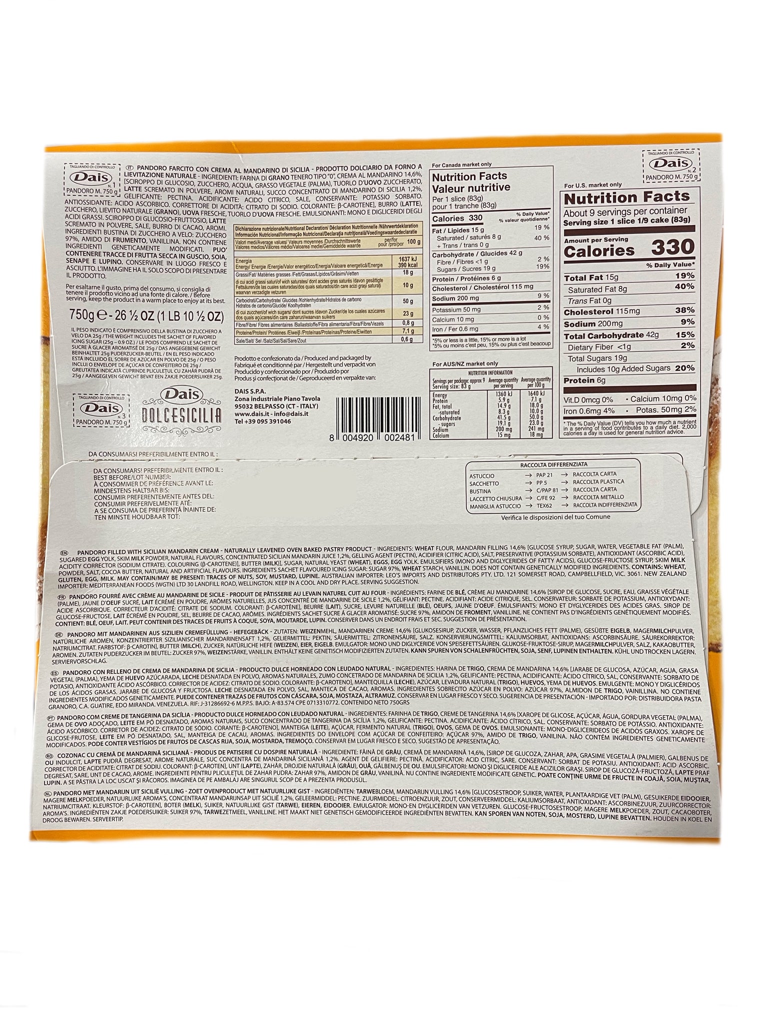 WEIZENMEHL (GLUTENHALTIGES GETREIDE), MandarinenCREME 14,6% [Glukosesirup, Zucker, Wasser, Pflanzliches Fett {Palme}, gesüßtes EIGELB (EI), MAGERMILCHpulver (MILCH), natürliche Aromen, konzentrierter sizilianischer Mandarinensaft 1,2% Geliermittel: Pektin, Säuerungsmittel: Zitronensäure, Salz, Konservierungsmittel: Kaliumsorbat, Antioxidationsmittel: Ascorbinsäure, Säurekorrektor: Natriumcitrat, Farbstoff: Beta-Carotin], BUTTER (MILCH), Zucker, natürliche HEFE [WEIZEN GLUTENHALTIGES GETREIDE)], EIER (EI), EIGELB (EI), Emulgator: Mono- und Dyglyceride von Speisefettsäuren, Glukose-Fruktose-Sirup, MAGERMILCHPULVER (MILCH), Salz, Kakaobutter, Aromen. |